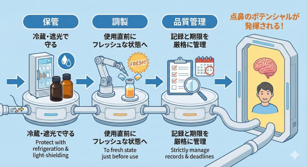 NMN點鼻之所以較容易出現差異,其中一個原因在於,從製劑完成到進入體內的過程中,所經歷的管理與流程。