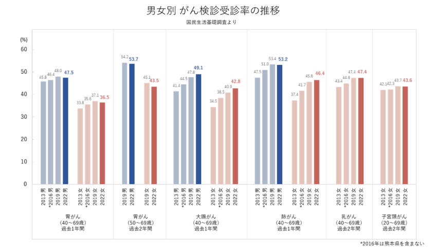 这一计划将胃癌、肺癌、大肠癌、乳腺癌和宫颈癌5种癌症筛查的参与率目标从50%提高到60%。尽管如此,日本的癌症筛查参与率仍显著低于欧美国家(80%以上),目前仅维持在40%至50%左右。